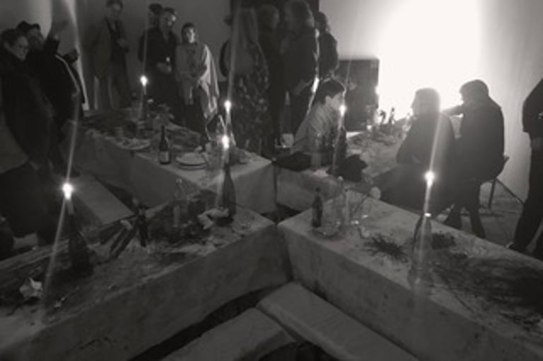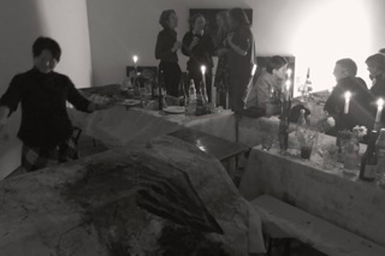 Hans-Christian Saylors erweitert die die Grenzen der traditionellen Malerei. Diese präsentiert er seinen Anhängern und neuen Kunstfreunden gerne auf ungewöhnliche Weise auf speziellen Events - Kunstausstellungen! Wie z.B. auf diesem Event - „Dinneroncanvas“ - wurde stilvoll auf Leinwandgedeckten Tischen und Bänken diniert! Anschliessend sogar auf den Leinwänden getanzt! Nichts ist dem Künstler heiliger, als die Würdigung seiner Kunst darauf zu denieren und zu flankieren und zu tanzen! Dancing on canvas with joy! That‘s a special kind of art - or not?